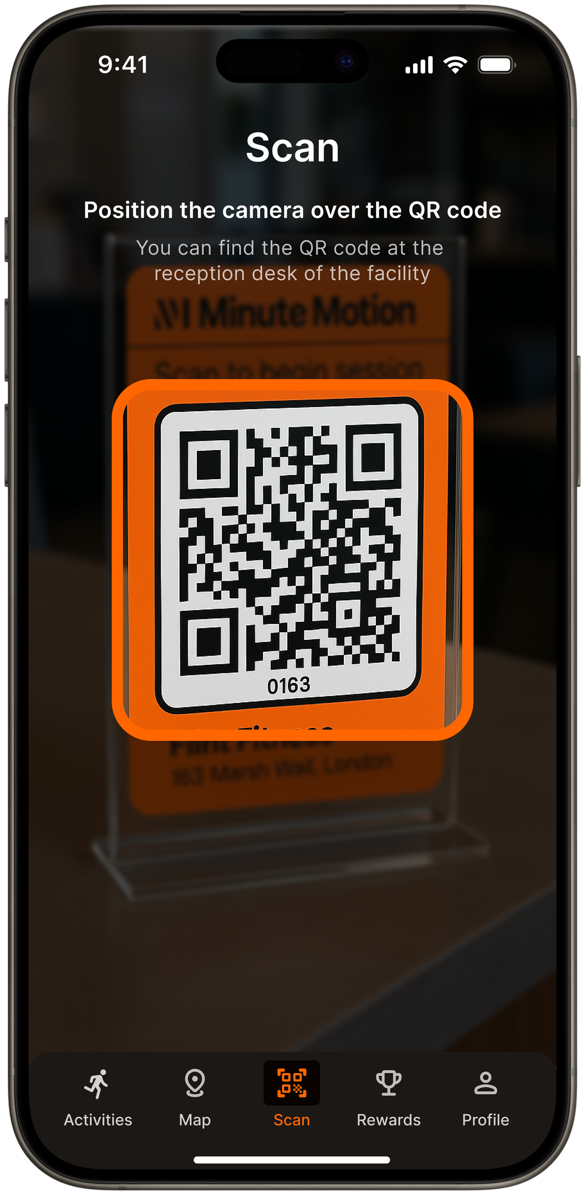 Starting your session is simple. Scan the QR code at reception, and you’re ready to go.